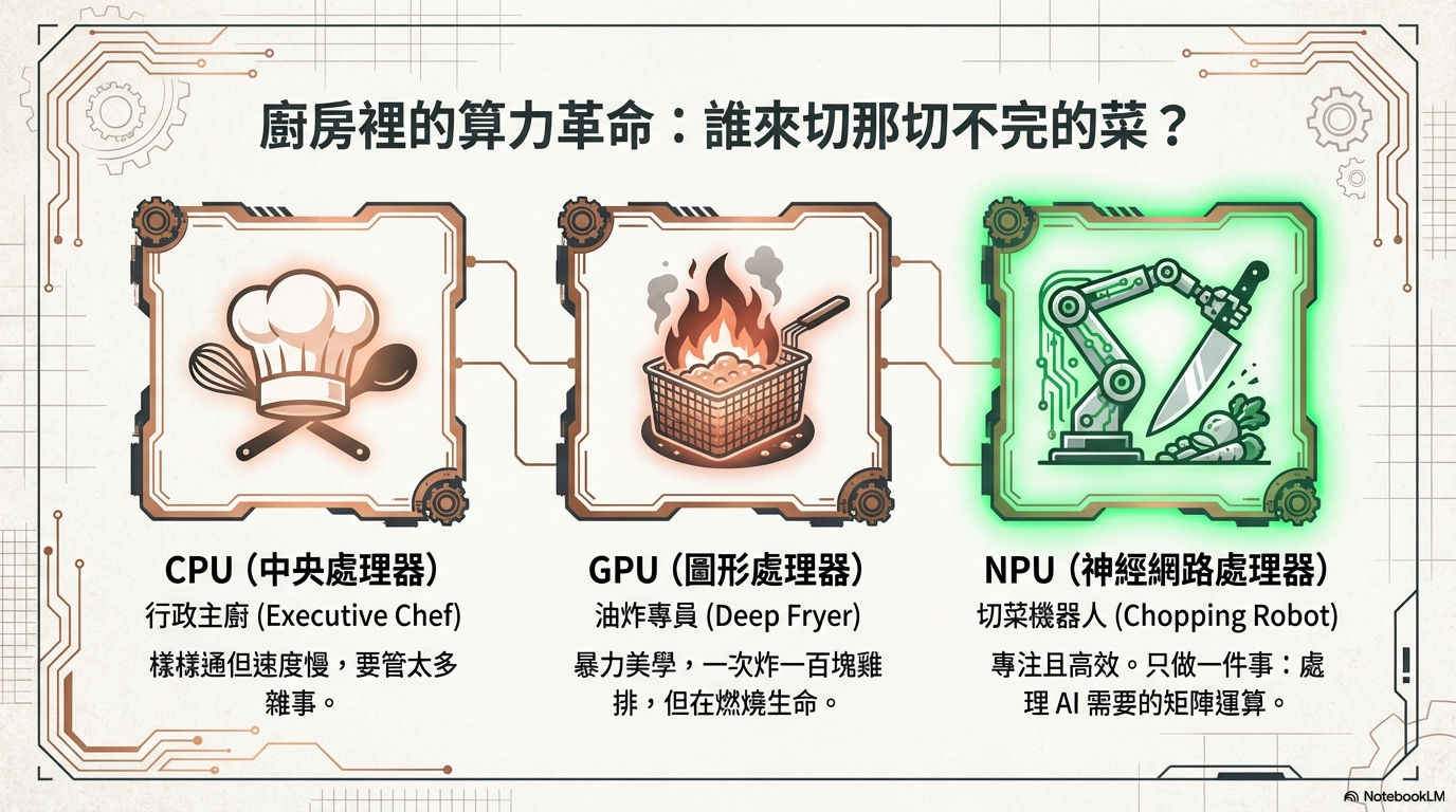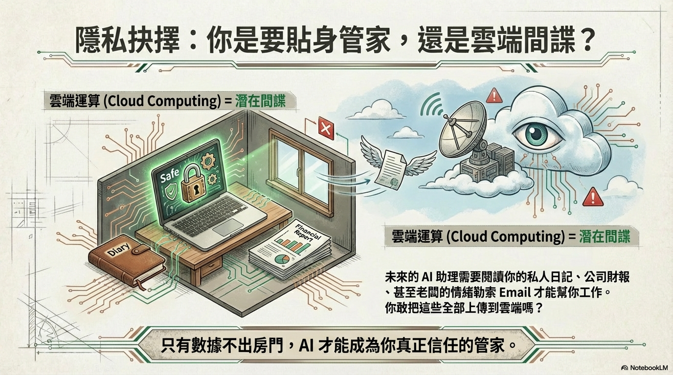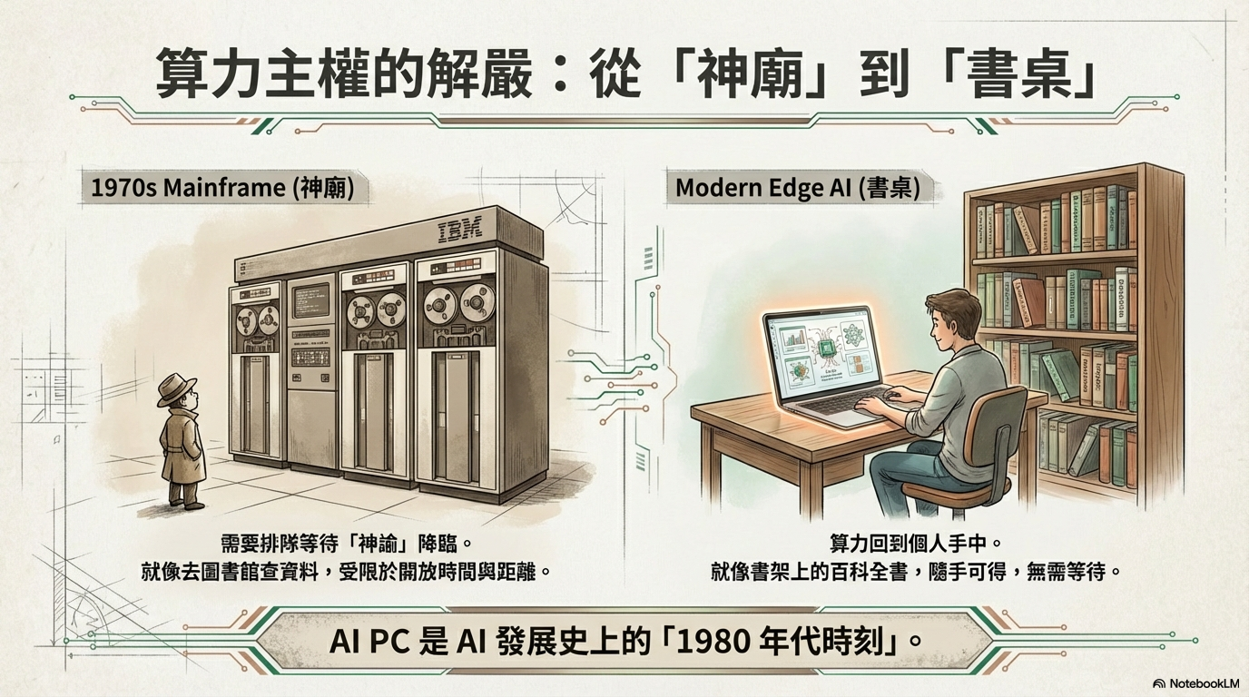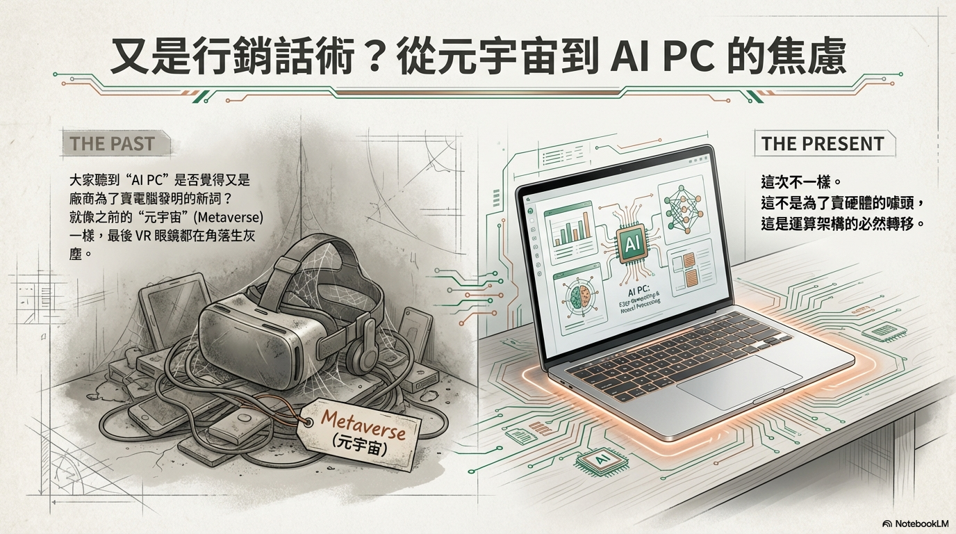 探討 AI 從雲端走入地端(本機)的趨勢,分析 NPU 的重要性,以及台灣晶片(聯發科)與品牌(華碩/宏碁)在 AI PC 浪潮中的關鍵角色。